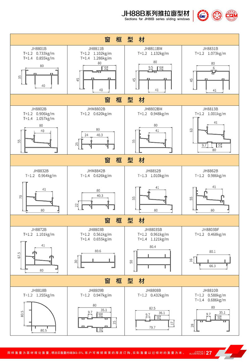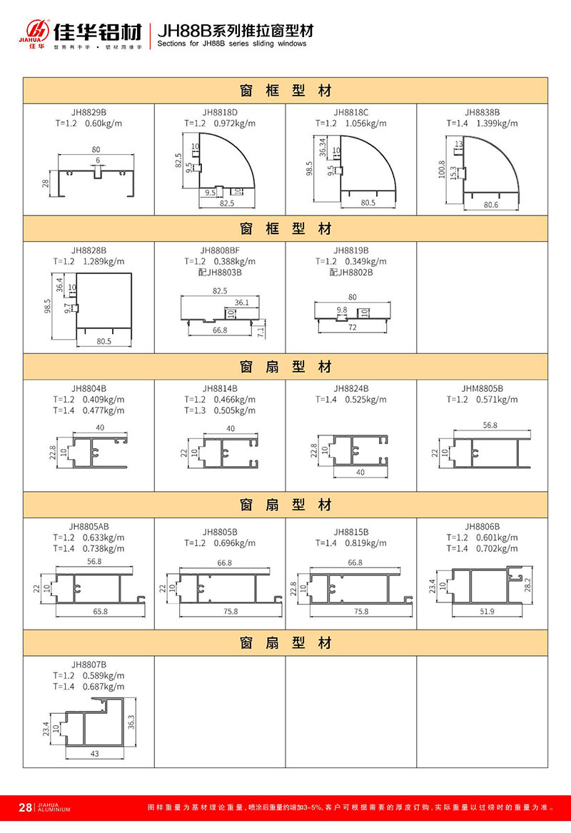 鋁型材規(guī)格型號(hào):JH88B
